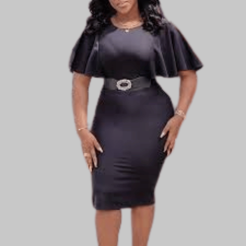 Redefine office elegance with this chic navy wrap dress. Featuring a belted waist and modest V-neckline, it enhances your natural shape while maintaining a polished appearance. The soft, breathable fabric ensures all-day comfort — ideal for meetings, presentations, and after-work events.